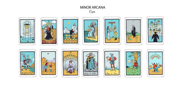 - Kielichy (Woda) – symbolizują emocje, uczucia, relacje, intuicję. Wskazują na miłość, empatię, sztukę, marzenia, ale też na uzależnienia i nadwrażliwość.